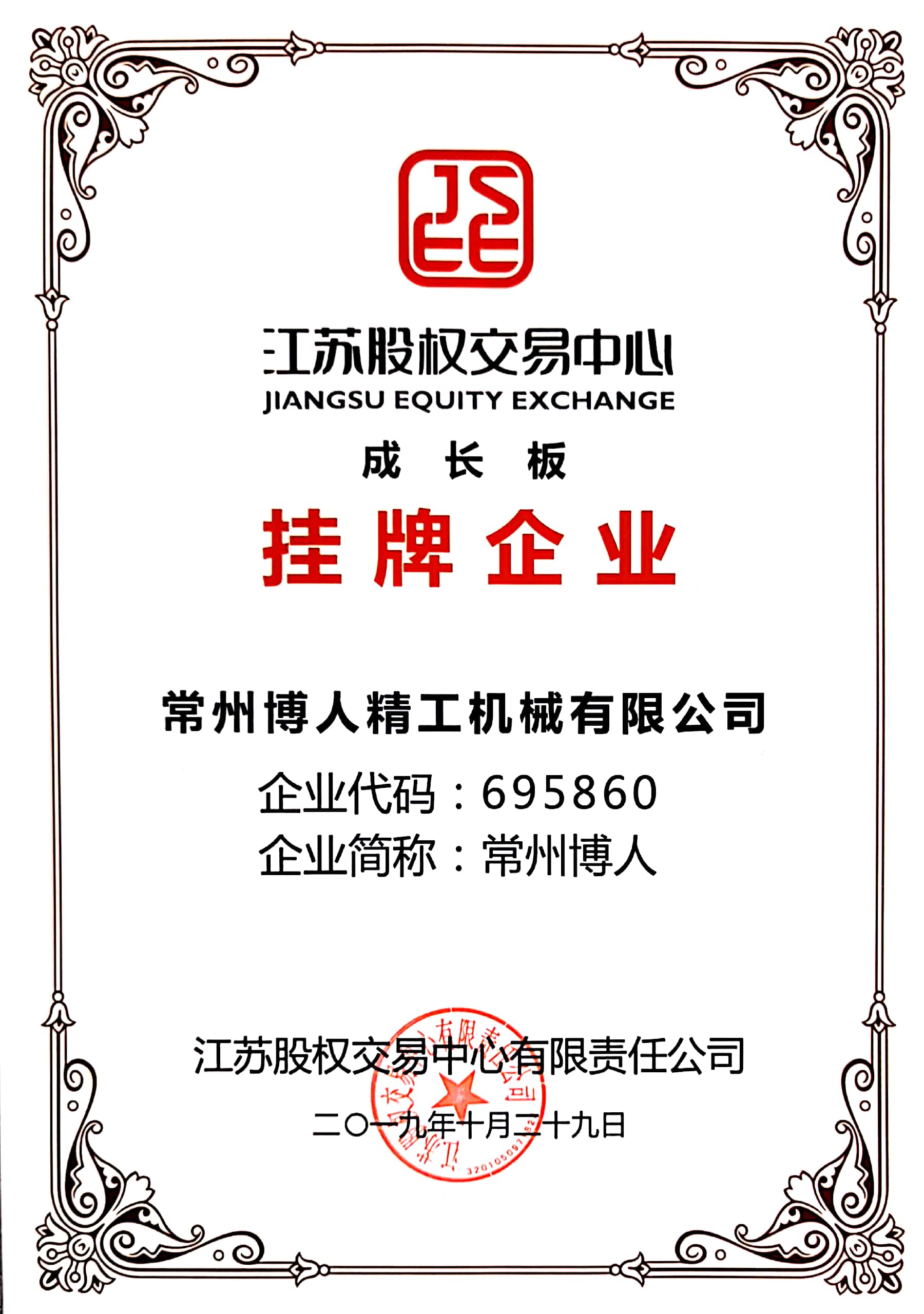 近年來,常州博人公司通過開展技術(shù)研發(fā)工作,不斷加大研發(fā)投入,加強(qiáng)技術(shù)成果轉(zhuǎn)化,提高自主創(chuàng)新能力,至2020年5月,共獲得了各項專利20余項。并于2019年12月被評為國家高新技術(shù)企業(yè)并成功登陸江蘇股權(quán)交易中心成長版。