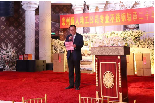 1月1日中午11點(diǎn)28分博人公司2019年度年會(huì)暨專業(yè)不銹鋼外球面帶座軸承二十周年客戶答謝會(huì)在寶利格大酒店正式舉行,總經(jīng)理許忠良發(fā)表了精彩生動(dòng)的致辭,為我們博人公司帶來了新的理念和方向,并且為公司十年以上的老員工頒發(fā)了紀(jì)念品,常州博人生產(chǎn)部副總王東和安徽精鑄部副總顧曉南為先進(jìn)員工頒發(fā)證書和獎(jiǎng)品,各車間也獻(xiàn)上了精彩的文藝表演。中國(guó)軸承工業(yè)協(xié)會(huì)秘書長(zhǎng)也作了精彩致辭,充分肯定了博人過去取得的成就,對(duì)博人未來的發(fā)展提出了更高的要求和希望,也為大家送來了節(jié)日祝福。